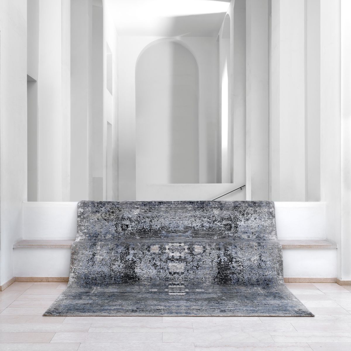 For a more modern tone, The Seduction collection features striking abstract patterns and a velvet-like texture. These rugs are handknotted from a blend of wool and viscose, resulting in a soft finish with a subtle sheen that adds depth and character to any space.