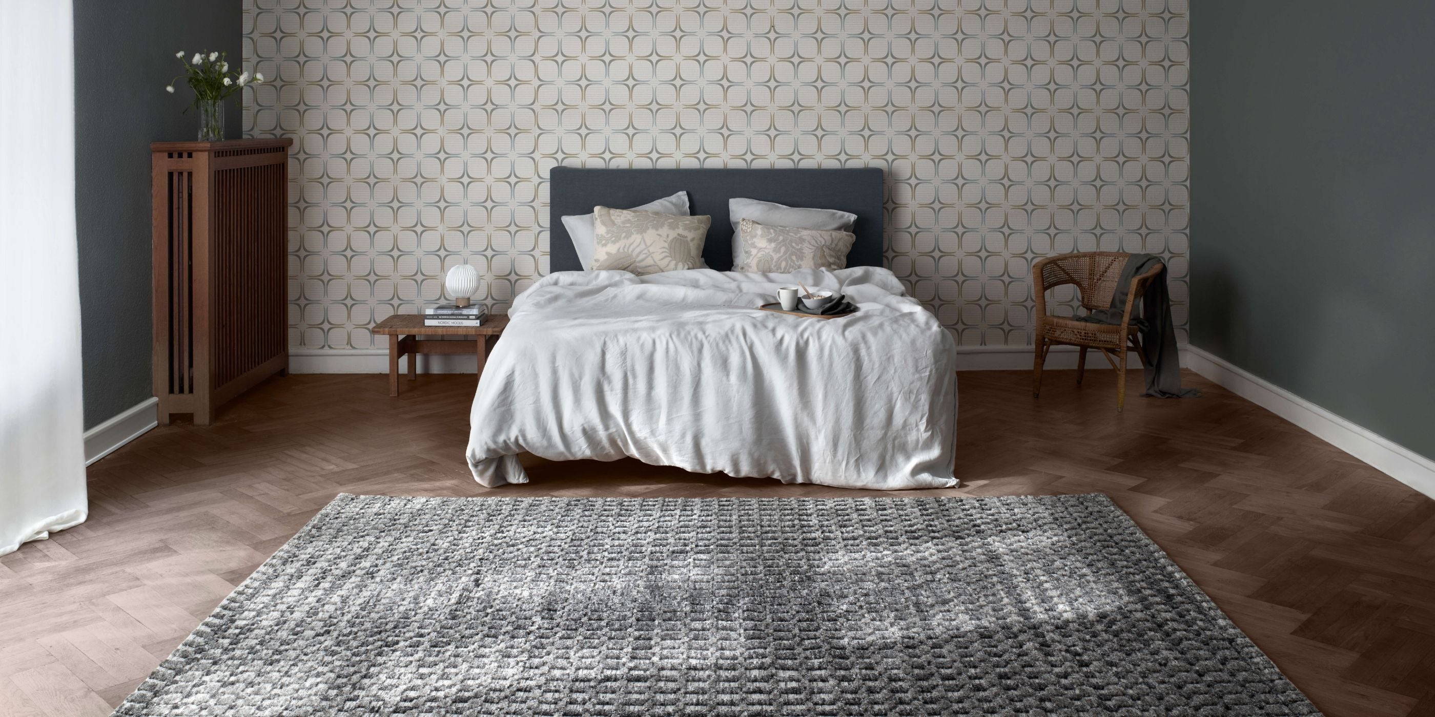 A bedroom rug also helps to anchor and ground existing furniture and decor, helping to centre and balance the room visually.