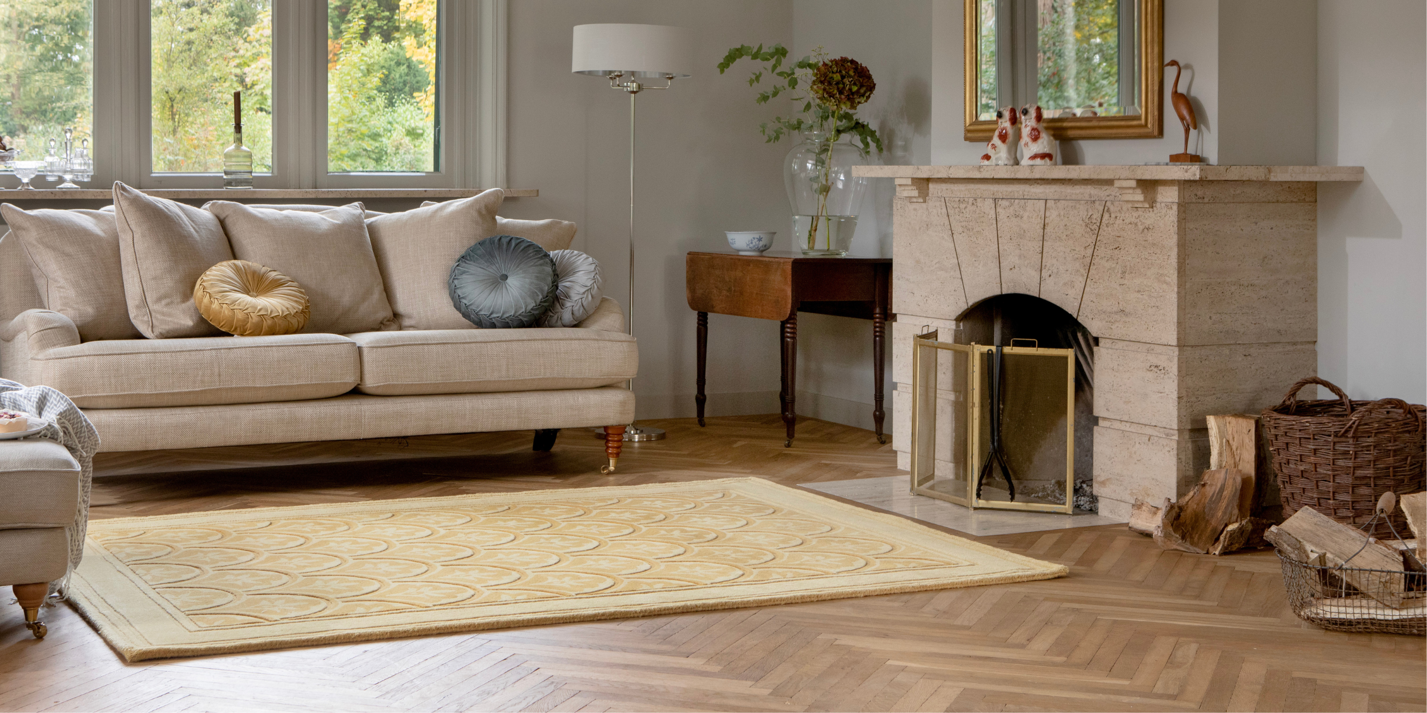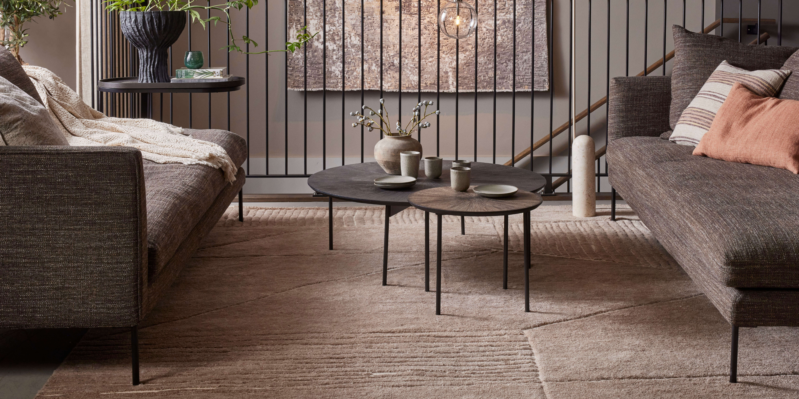 120x170cm or 140x200cm rugs are perfect for smaller rooms or more compact seating areas. Placing the rug just in front of the sofa, or under a coffee table can help to create a sense of cohesion in the space.