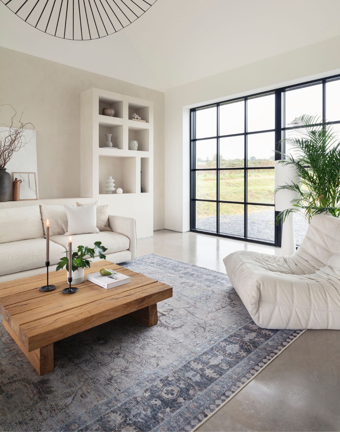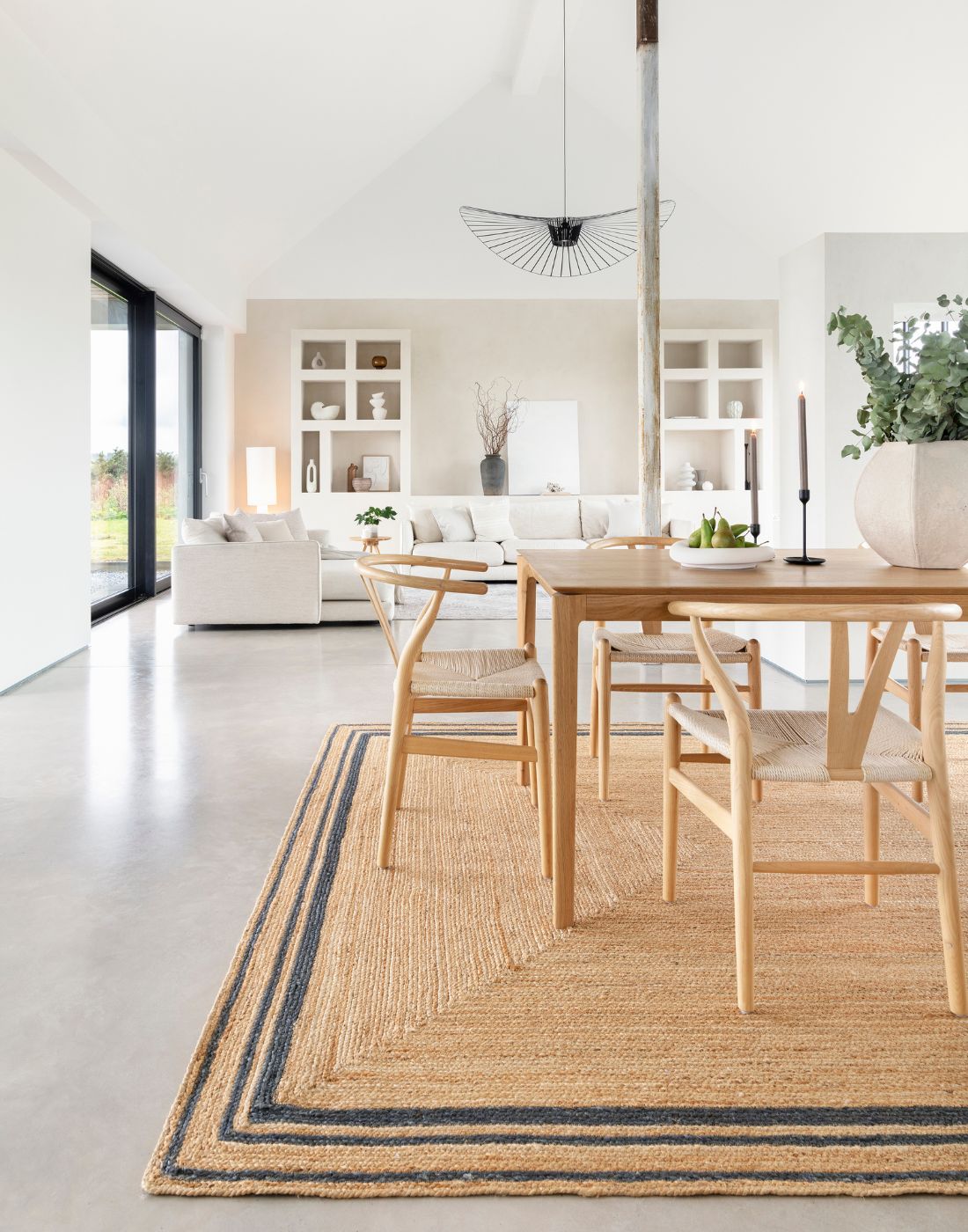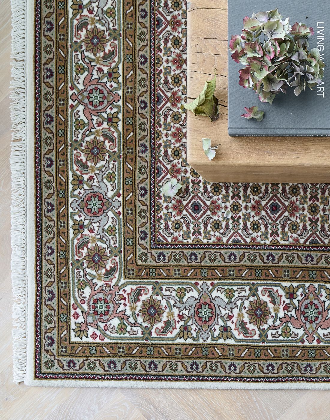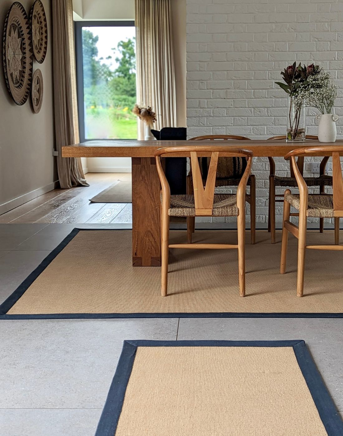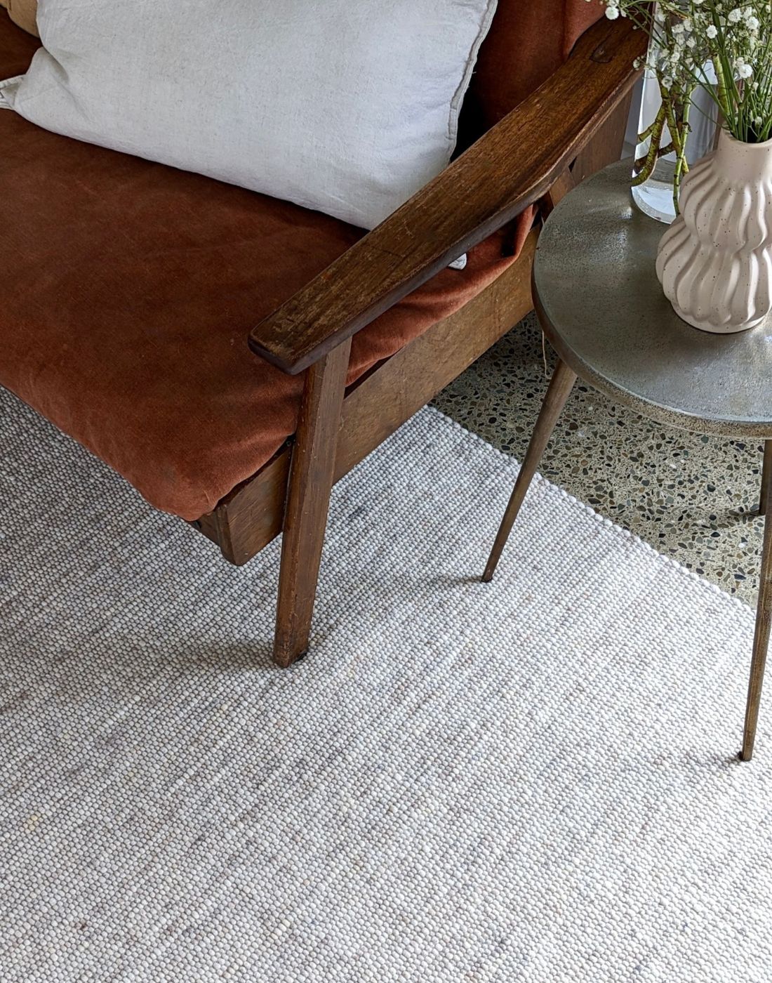Handwoven rugs crafted from handspun wool for a textured, natural look.