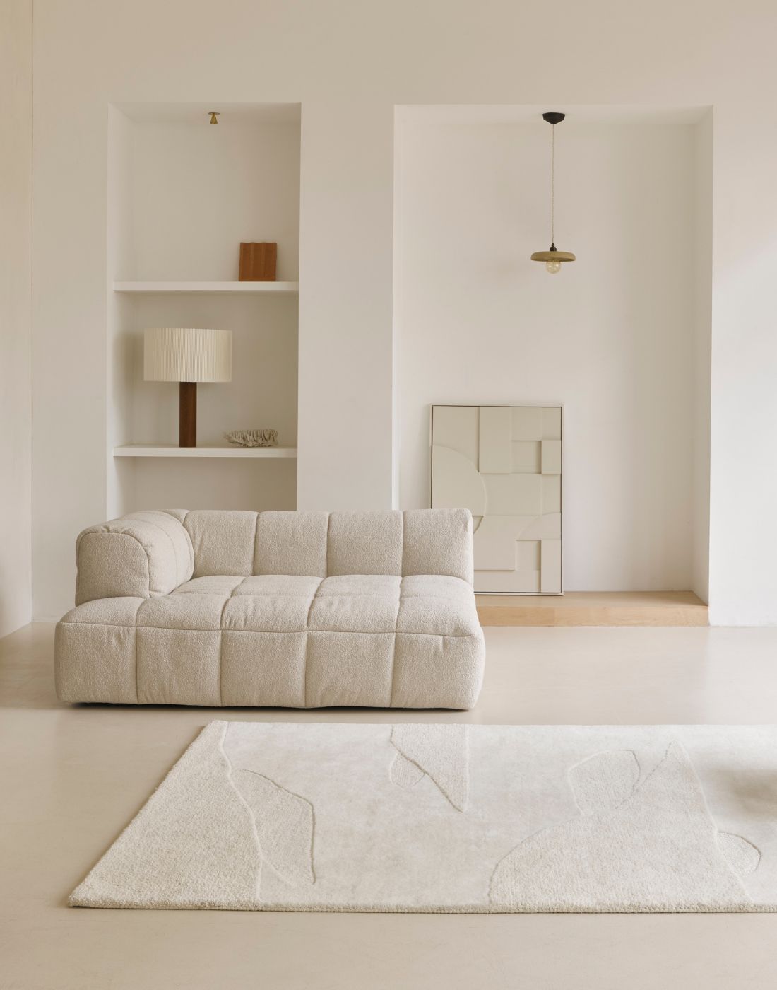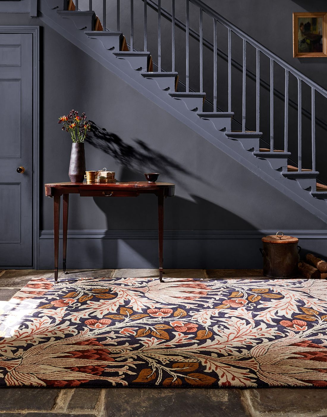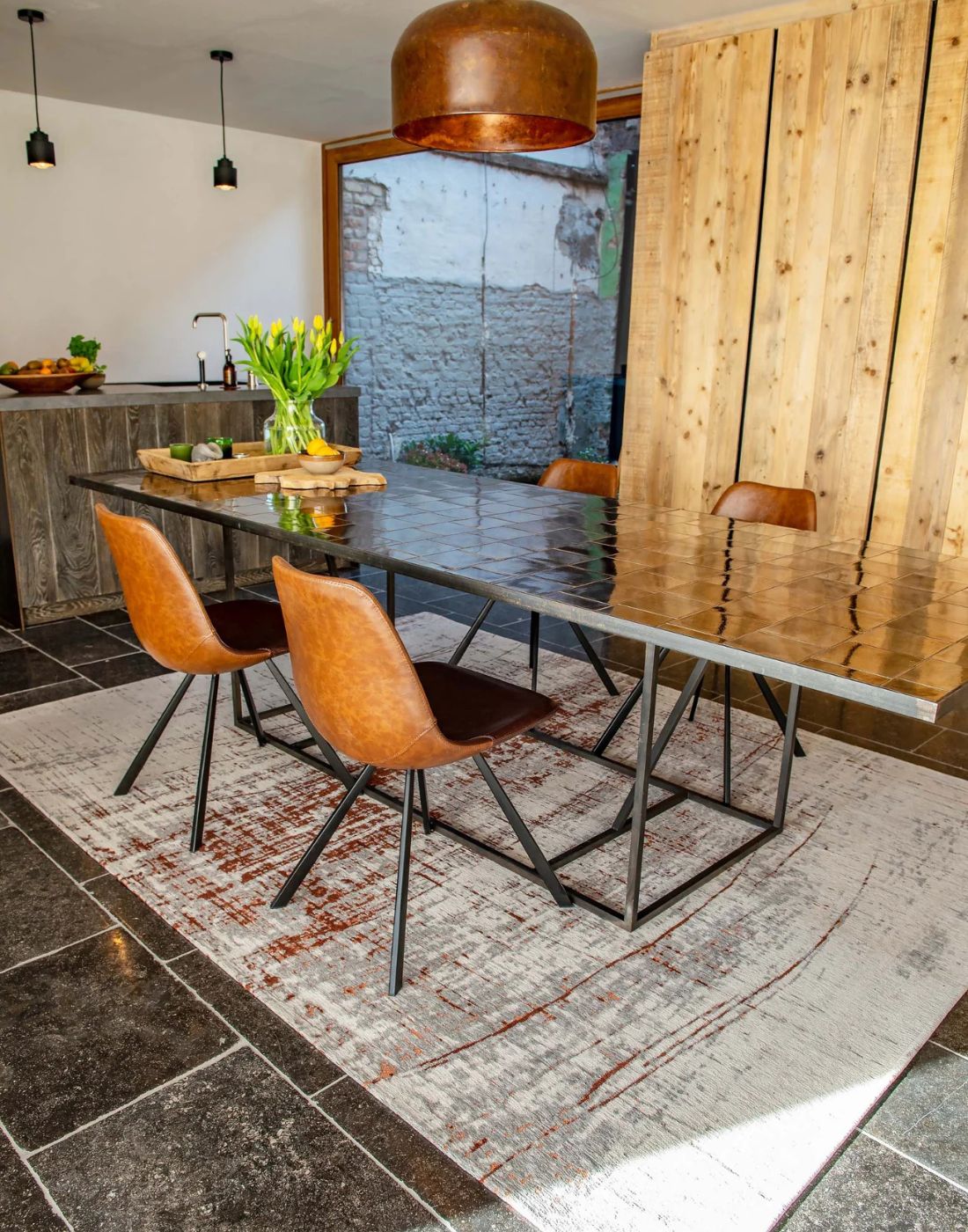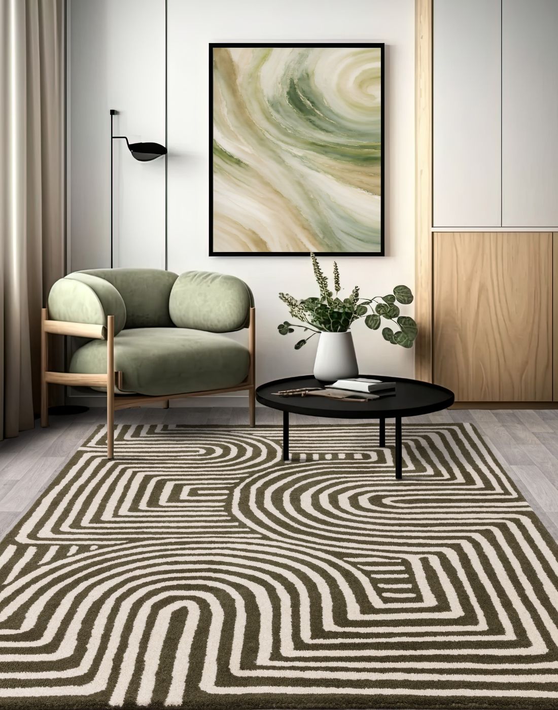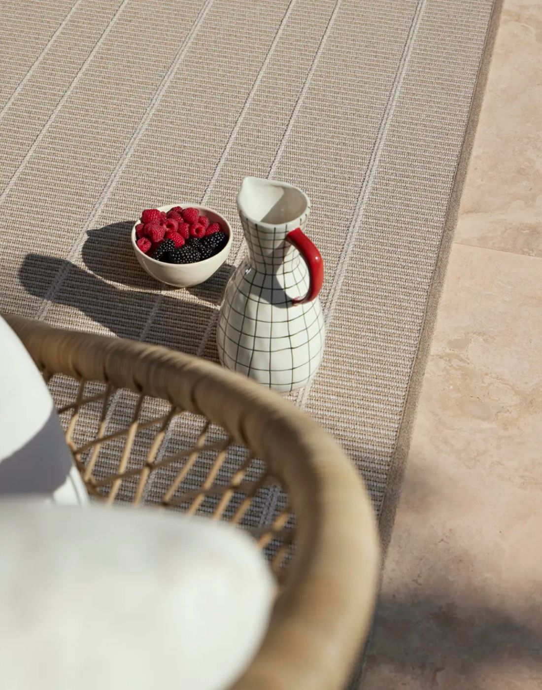 Handwoven rugs crafted from handspun wool for a textured, natural look.