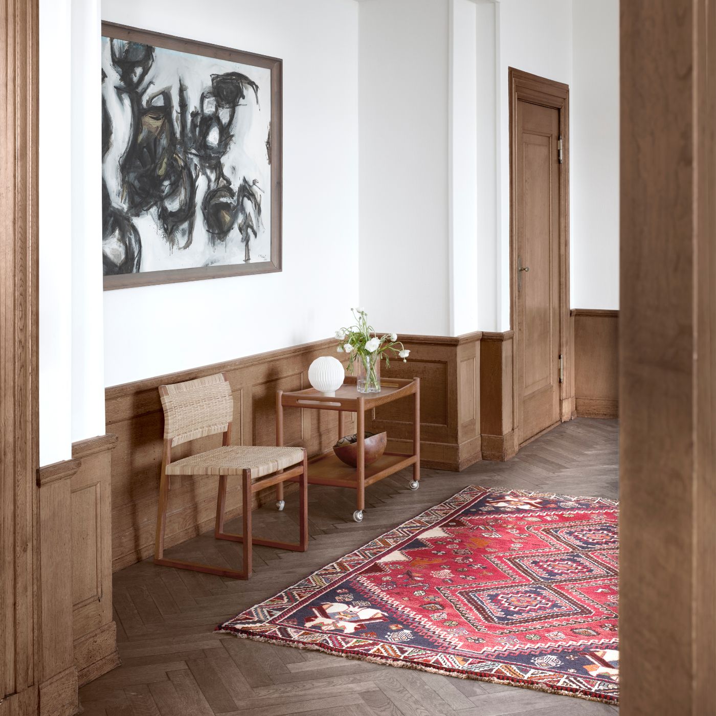 When deciding how to choose a Persian rug to decorate your home, think about the overall colour palette and patterns of your home. Persian rugs come in a variety of styles, from floral and traditional to geometric and tribal, so selecting one that complements or contrasts with your existing décor can help achieve the desired effect. Persian rugs can also suit modern interiors, adding a touch of timeless elegance to minimalist décor, while they harmonise beautifully with period homes, where they enhance the architectural details.